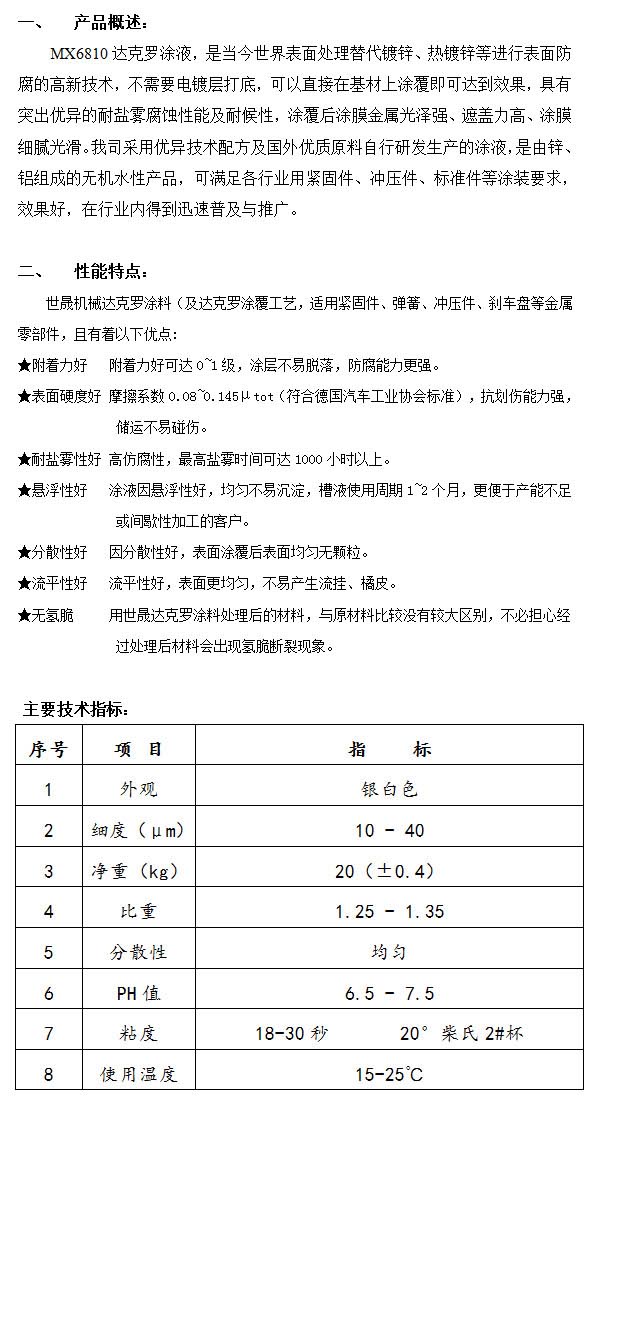 產品名稱:MX6810達克羅涂液
