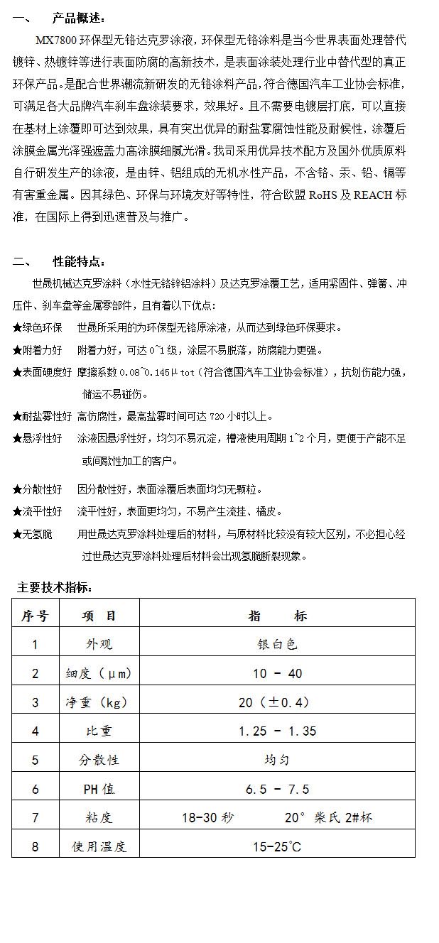 產品名稱:MX7800環保型無鉻達克羅涂液